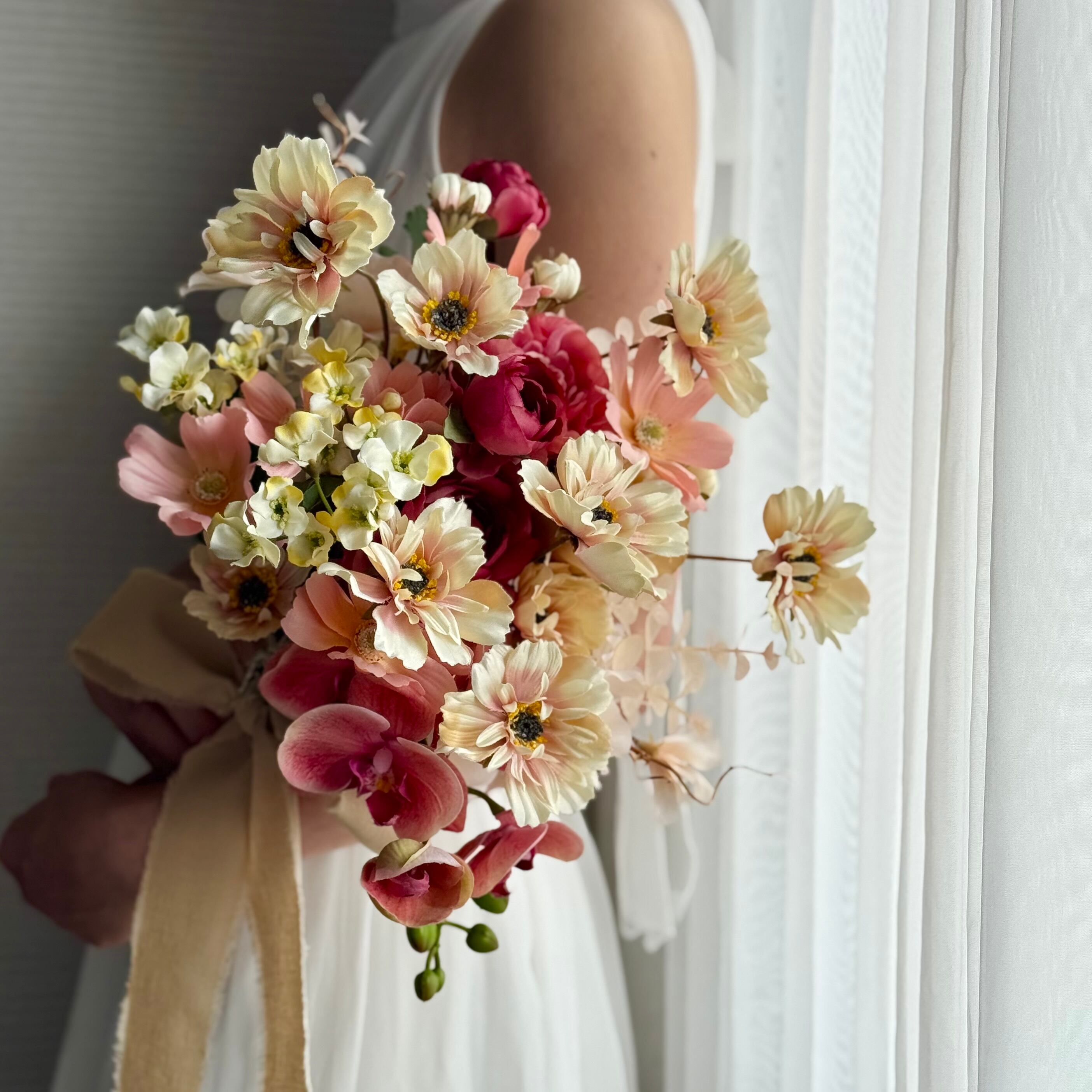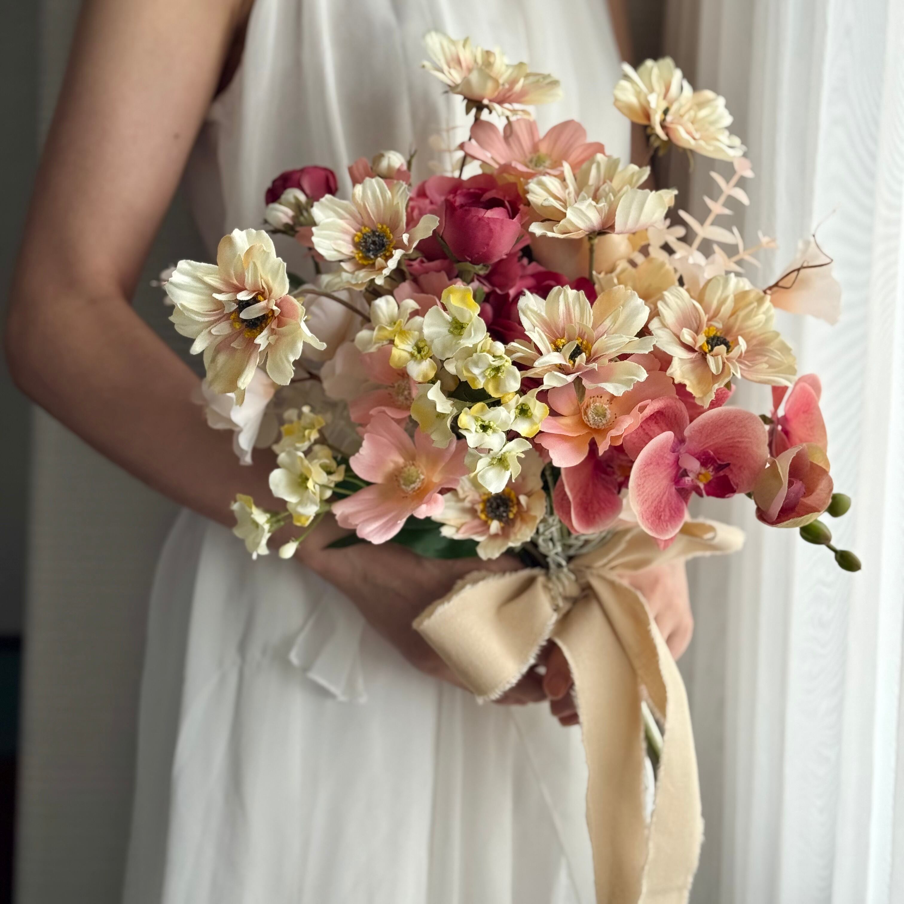 ウェディングブーケ ブーケ 秋ブーケ コスモス アーティフィシャルフラワーブーケ