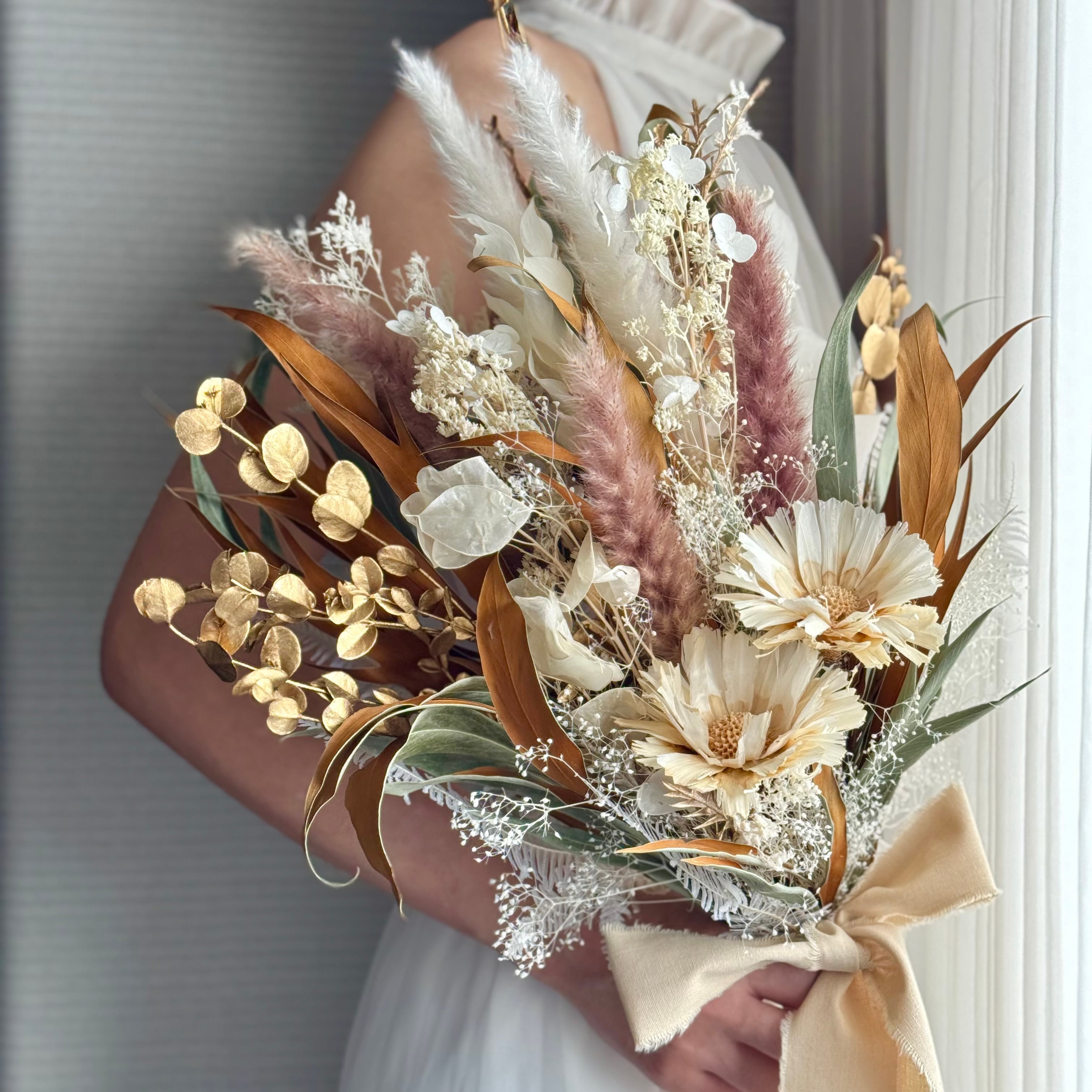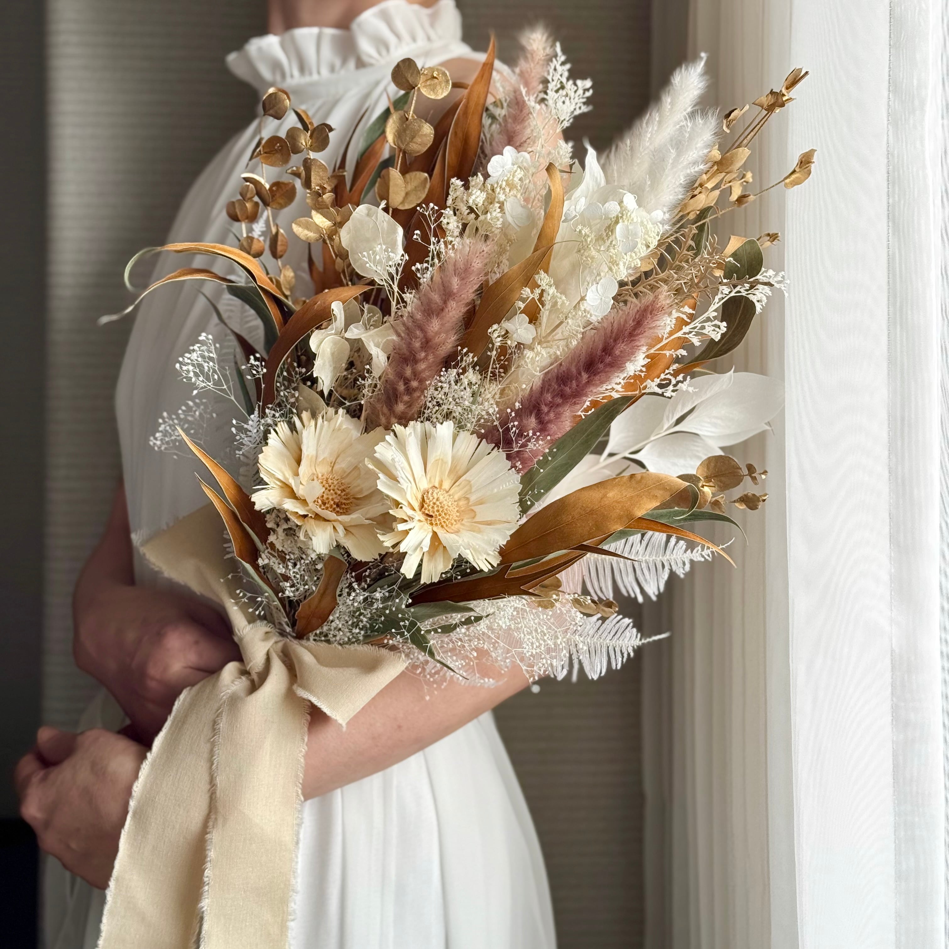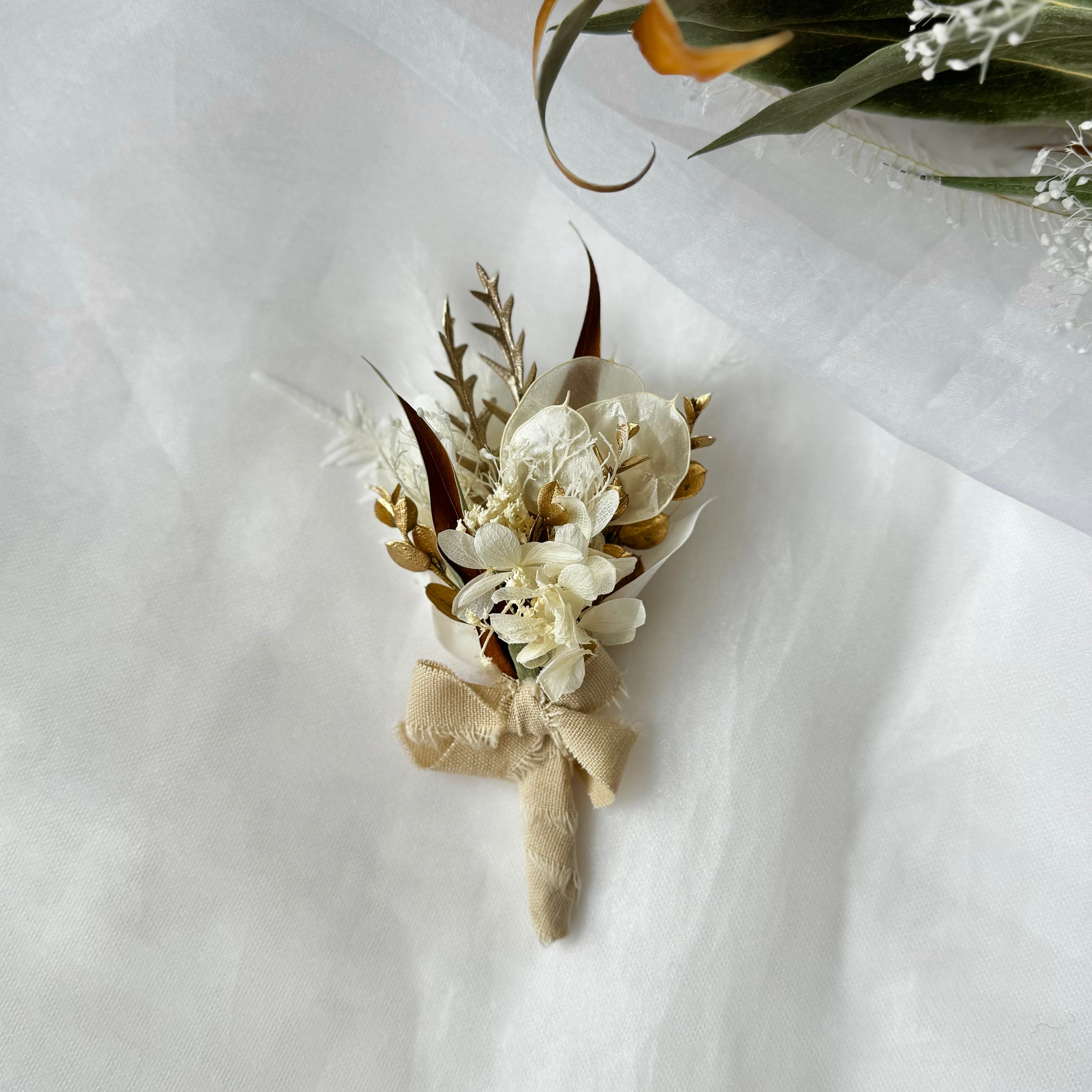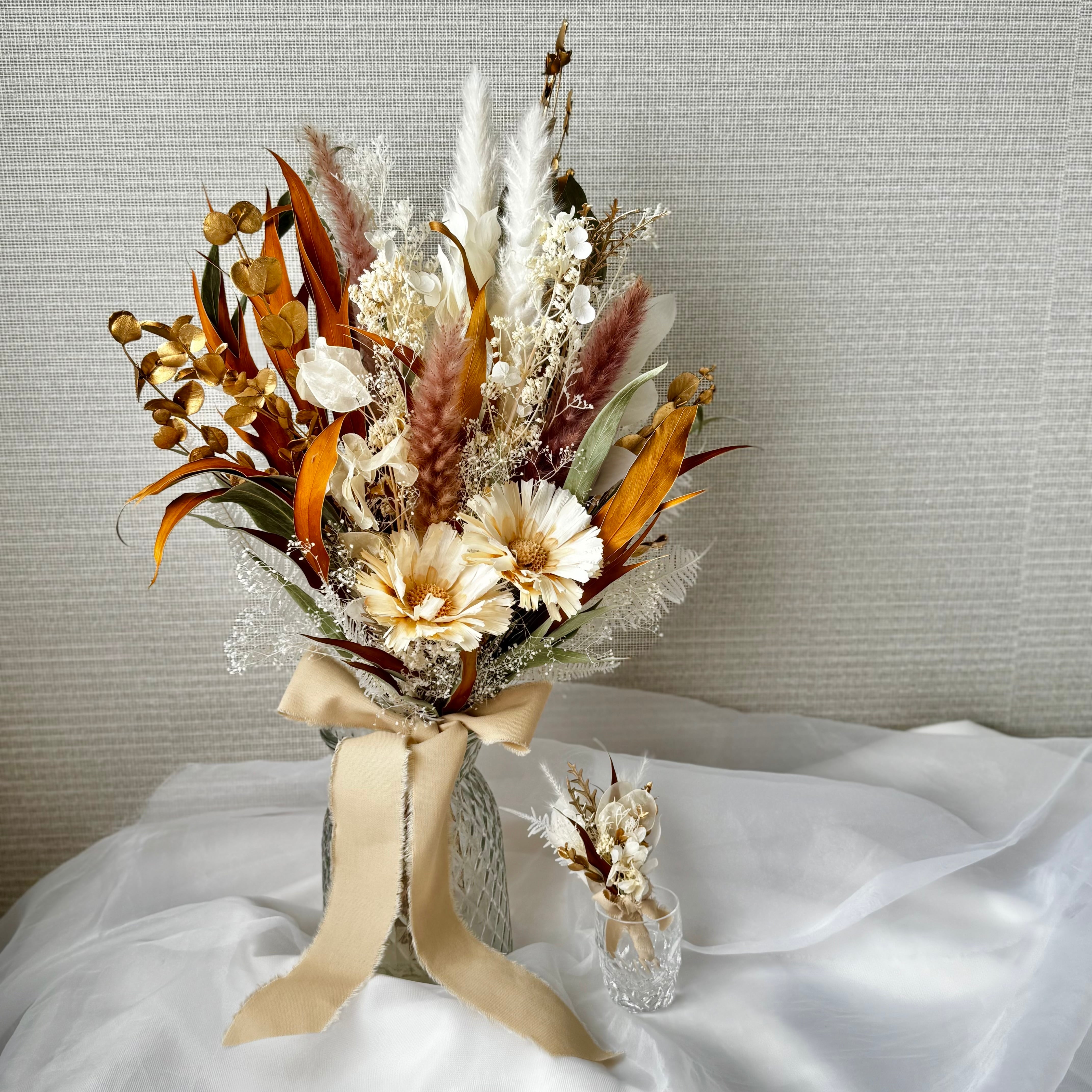前撮り ウェディングブーケ ドライフラワー|ロケーションフォト ブートニア付き