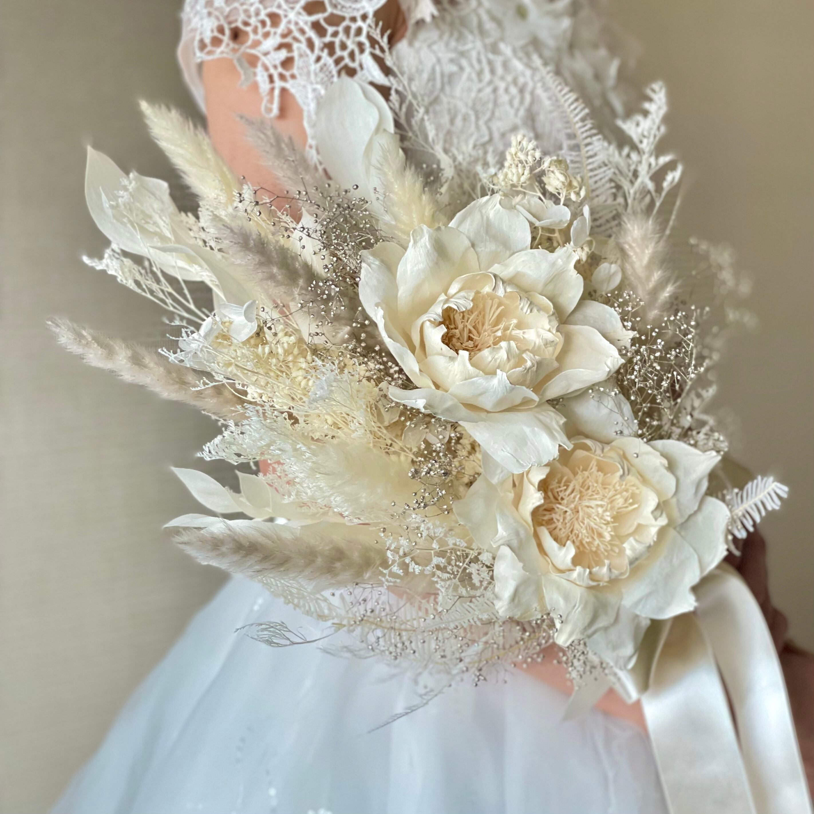 ウェディングブーケ ホワイトブーケ ドライフラワーブーケ