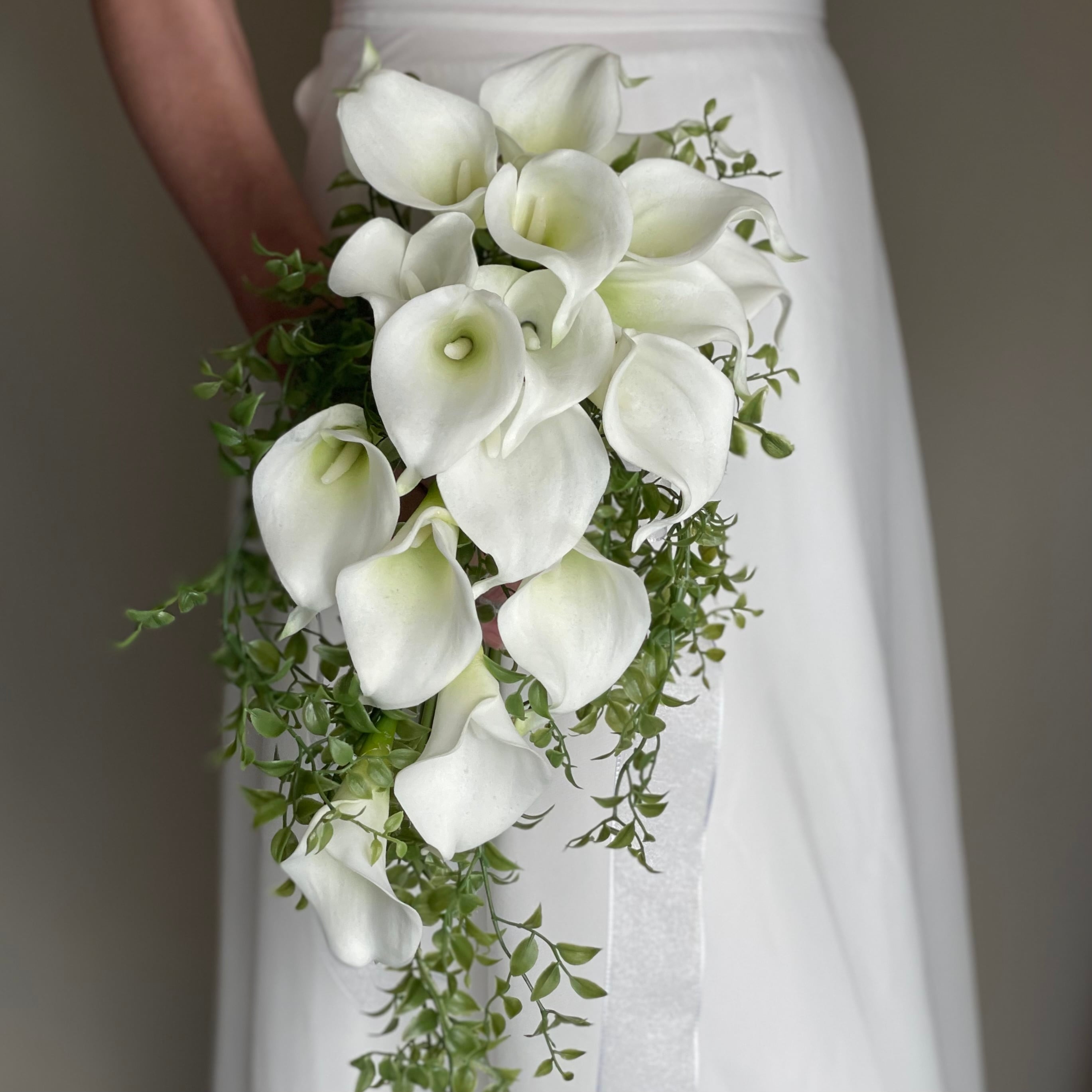 カラーとスマイラックスのみのシンプルでクラシカルなキャスケードブーケです。