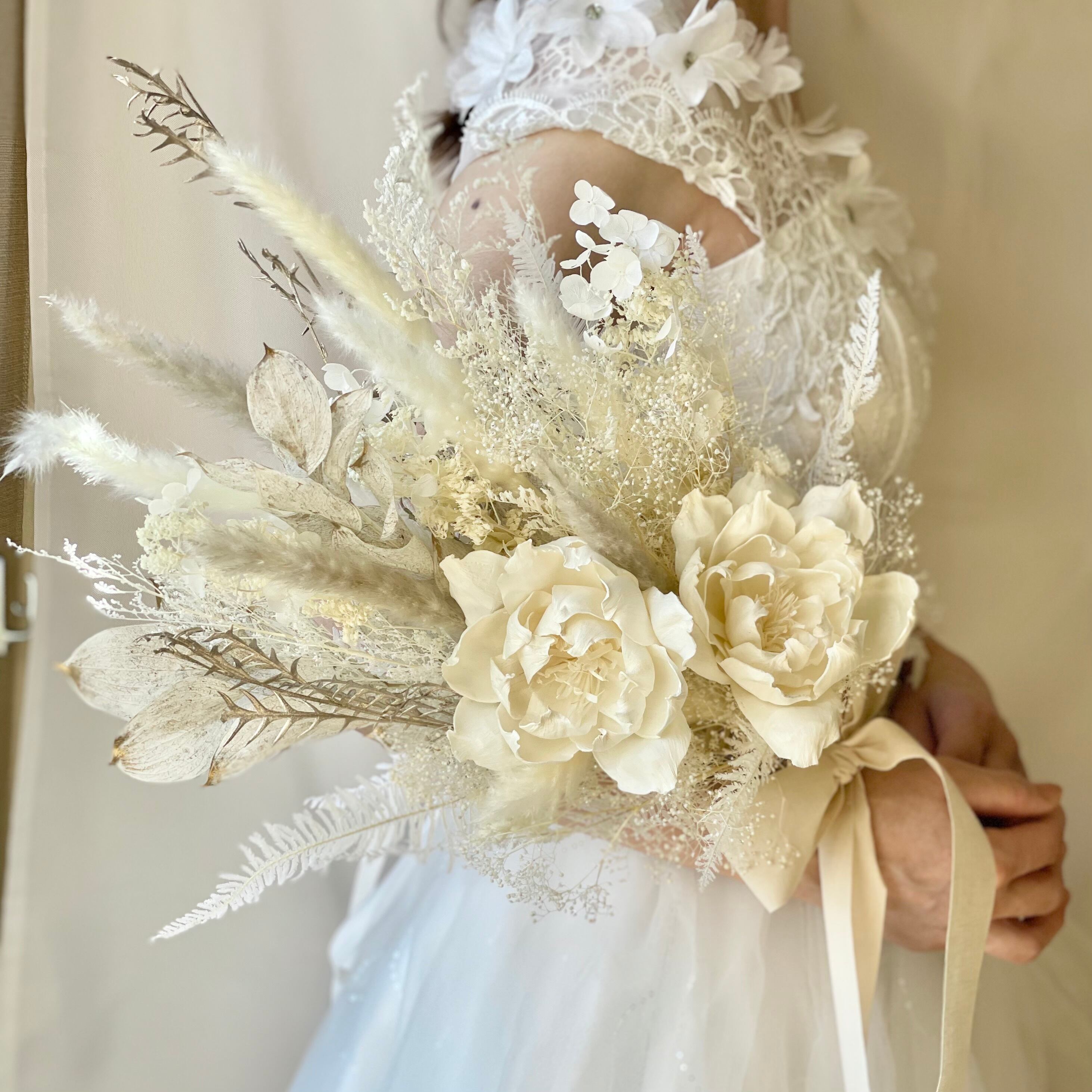 ホワイトブーケ ドライフラワーブーケ ウェディングブーケ ブーケ