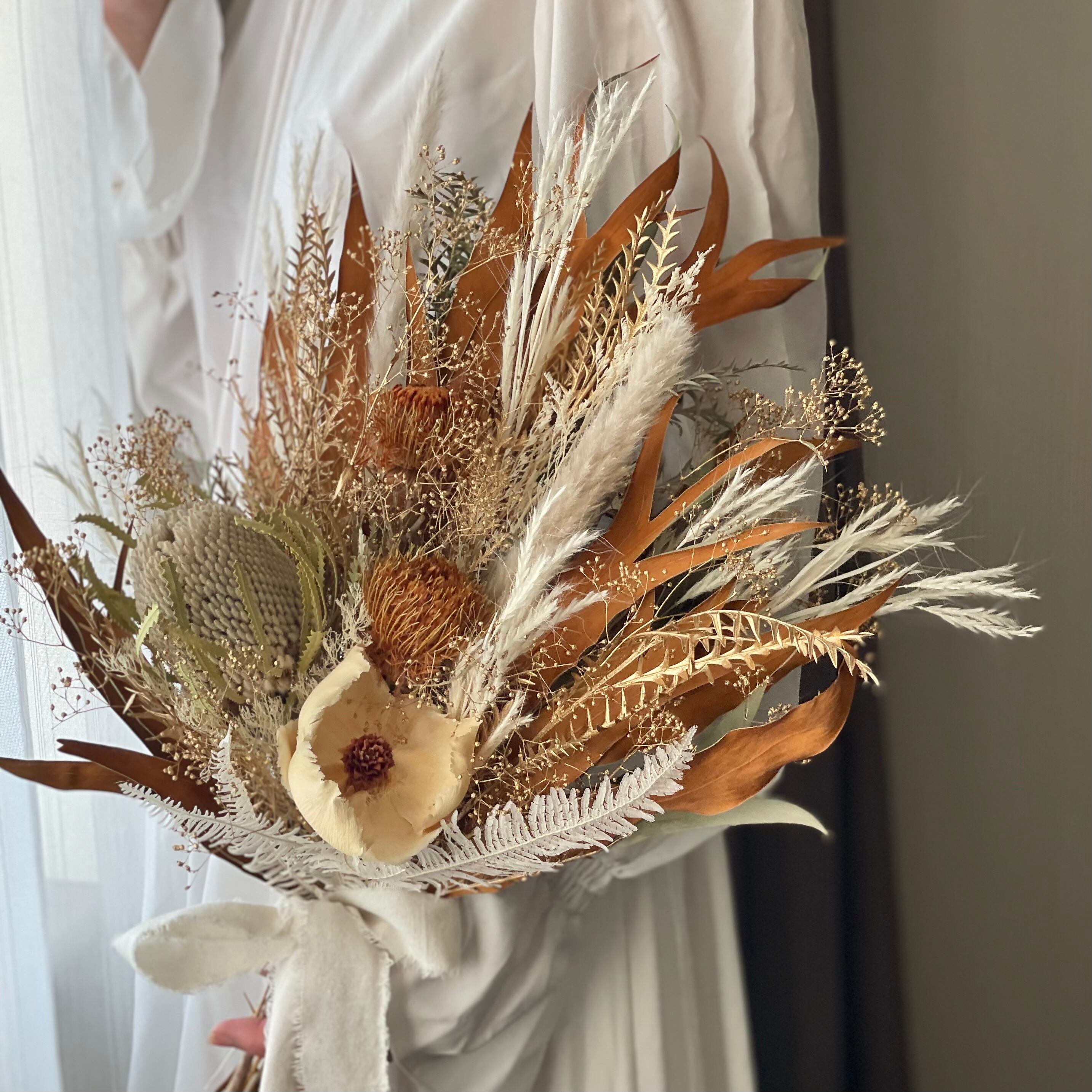 バンクシアをメインにワイルドフラワーを使ったボリュームのあるブーケです。