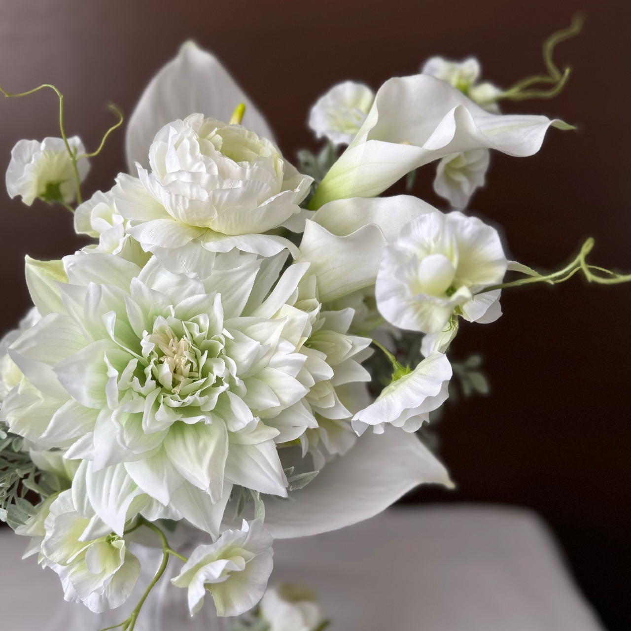 どんな形のドレスや和装にも、どんなシチュエーションでも馴染む万能ブーケです。