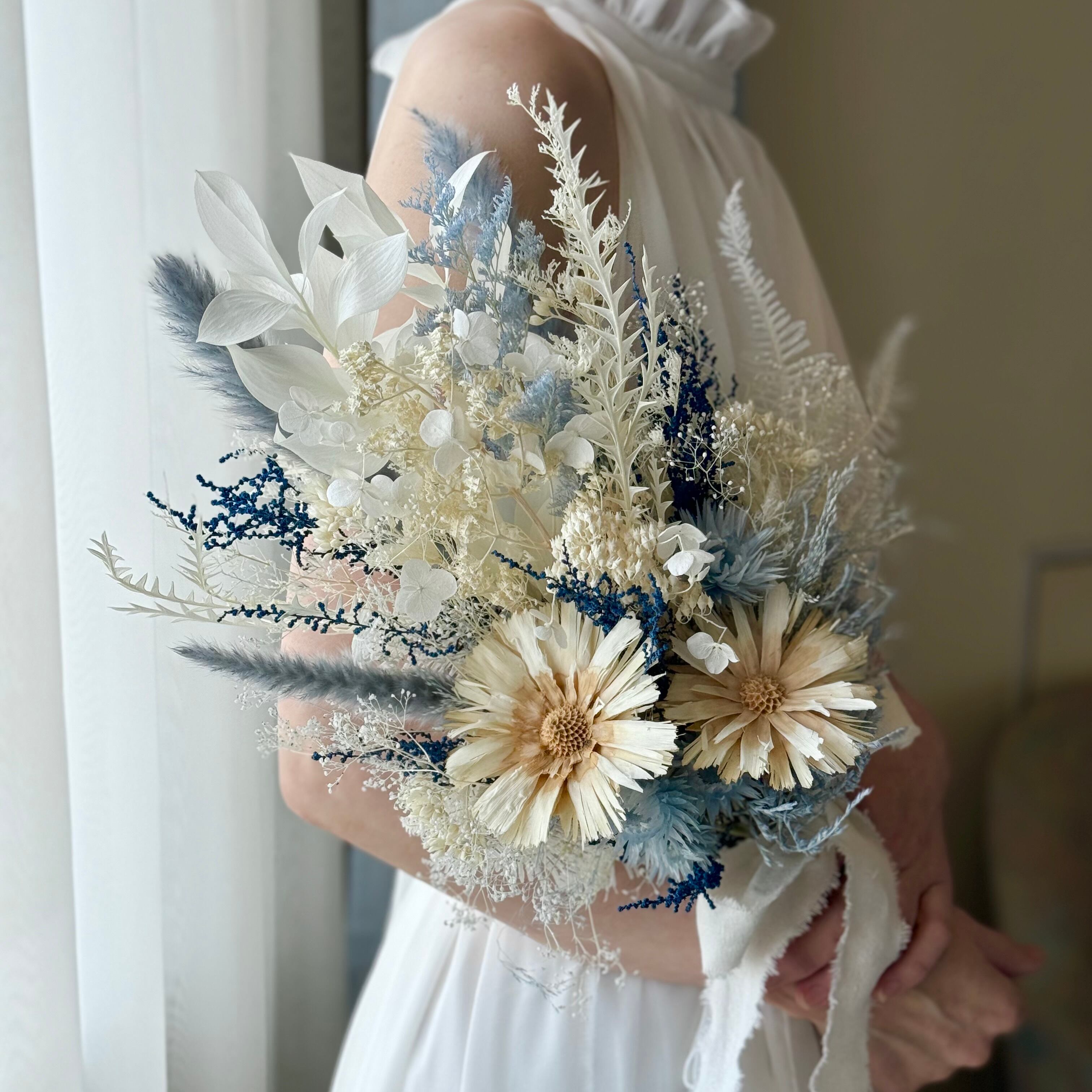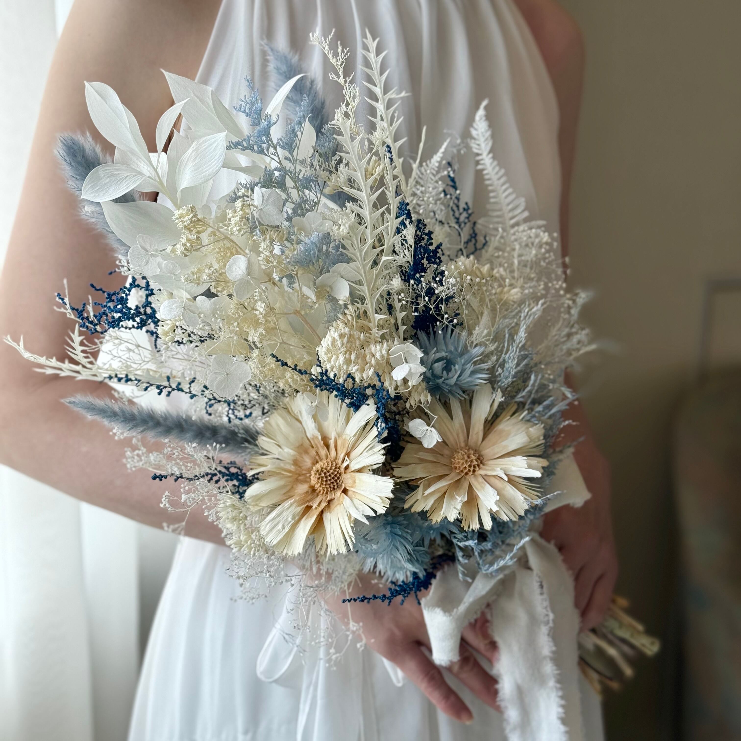 ウェディングブーケ ブルーブーケ ドライフラワーブーケ
