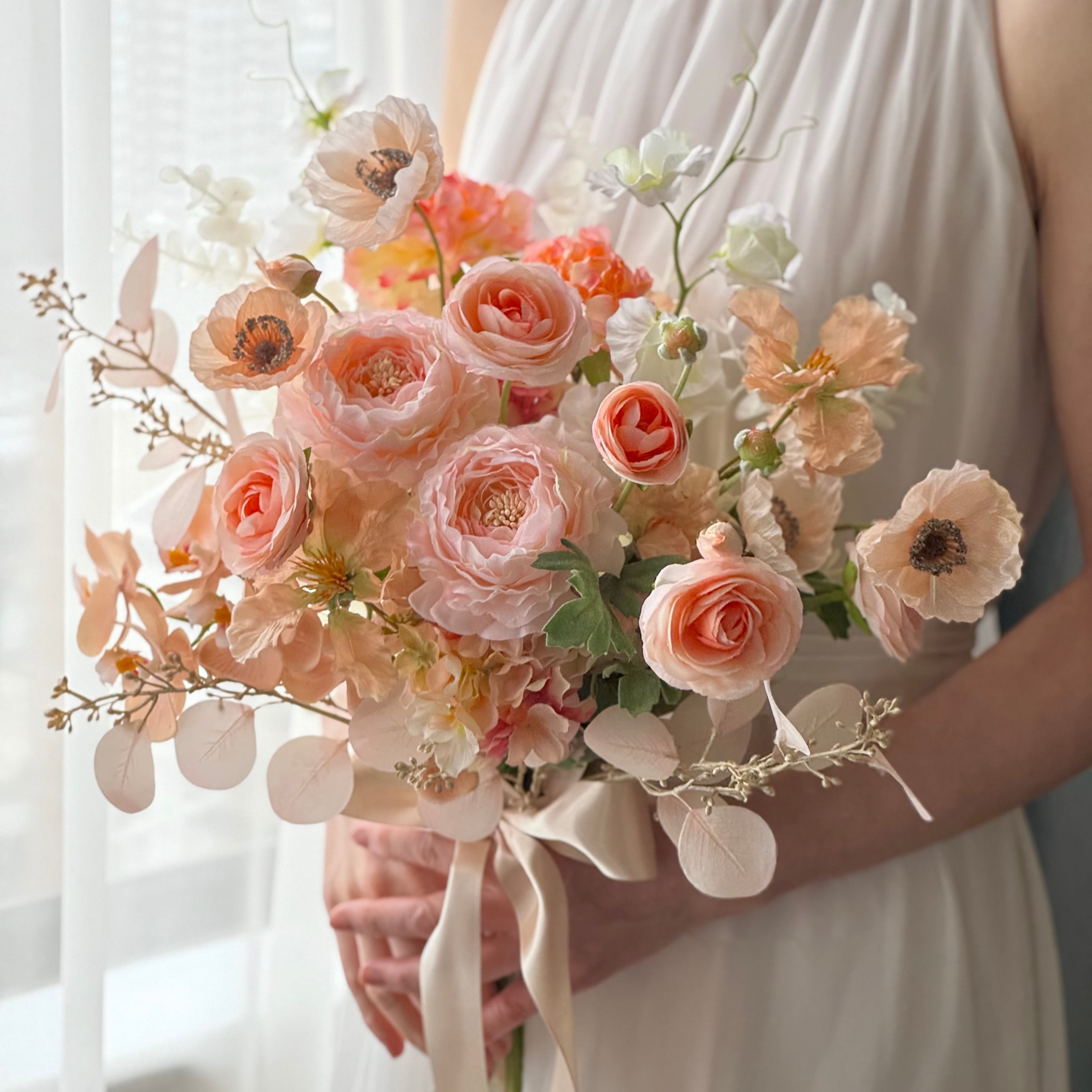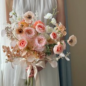 ウェディングブーケ アーティフィシャルフラワーブーケ ニュアンスカラー サーモンピンク